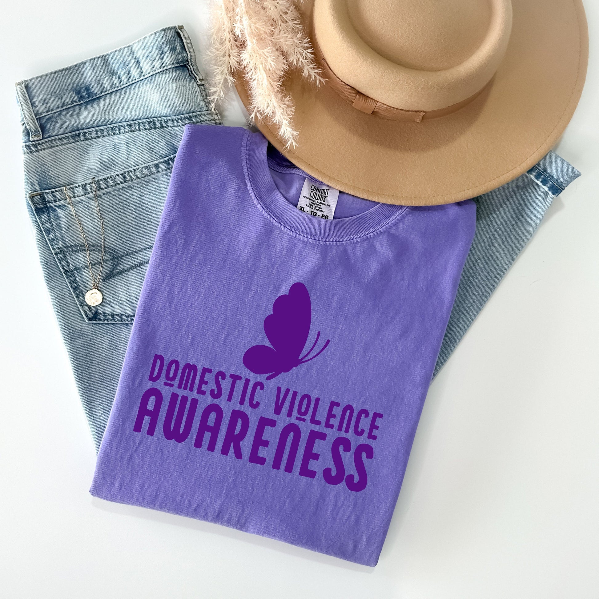 This Domestic Violence Awareness graphic tee combines style and comfort for a powerful statement. Made with soft Comfort Colors material, this tee also helps raise awareness for a worthy cause. Stand out with style and make a difference with this comfortable and stylish graphic tee.