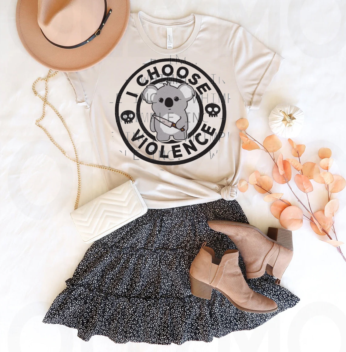 This stylish and comfortable graphic tee is the perfect choice for those who want to make a statement. With its eye-catching design, it's sure to turn heads and add a unique touch to any outfit. Made with high-quality materials, it not only looks great but feels great too. Don't just wear a t-shirt, choose violence.